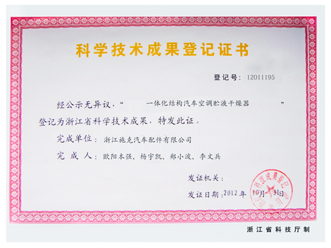 科學(xué)技術(shù)成果登記證書